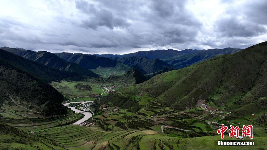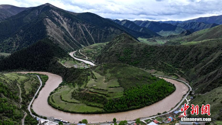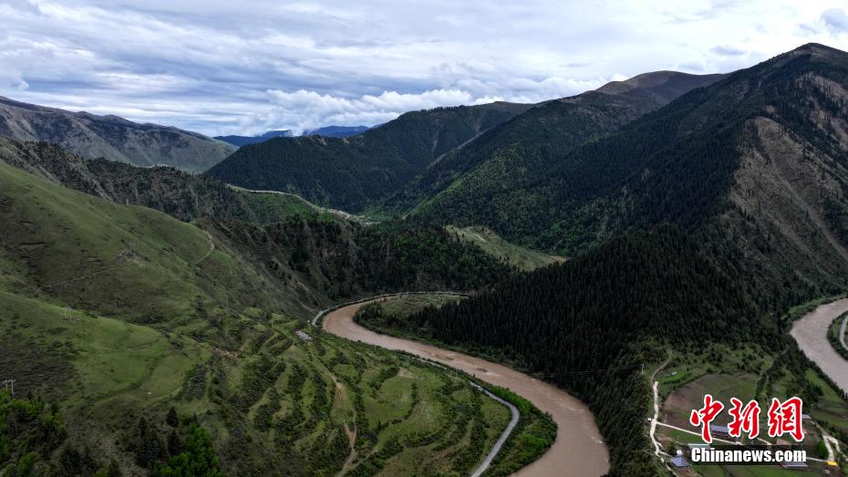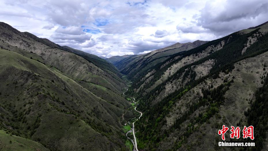 5月31日,青海省果洛藏族自治州班瑪縣以南39公里處的子木達溝綠樹成蔭。紅軍長征經(jīng)過班瑪時多次來往于此溝,故民眾改子木達溝為“紅軍溝”,以示紀念。班瑪是中國工農(nóng)紅軍二萬五千里長征唯一經(jīng)過青海的地方。(無人機照片)薛蒂 攝