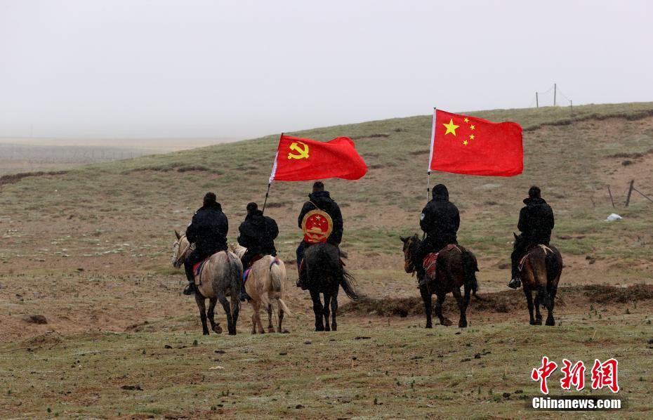 6月3日,在青海省果洛藏族自治州瑪多縣花石峽鎮(zhèn),瑪多縣人民法院“馬背法庭”的法官頂風(fēng)前往牧民家中進(jìn)行訴前調(diào)解。薛蒂 攝
