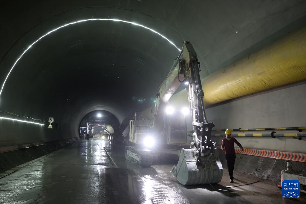 6月3日,中鐵四局的建設者在西成鐵路甘肅段格爾隧道內查看施工設備情況。新華社記者 陳斌 攝