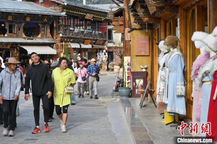 6月10日,游客身著富有民族風(fēng)情的服裝在獨(dú)克宗古城游覽、拍照。李嘉嫻 攝