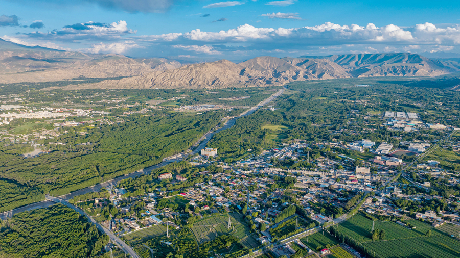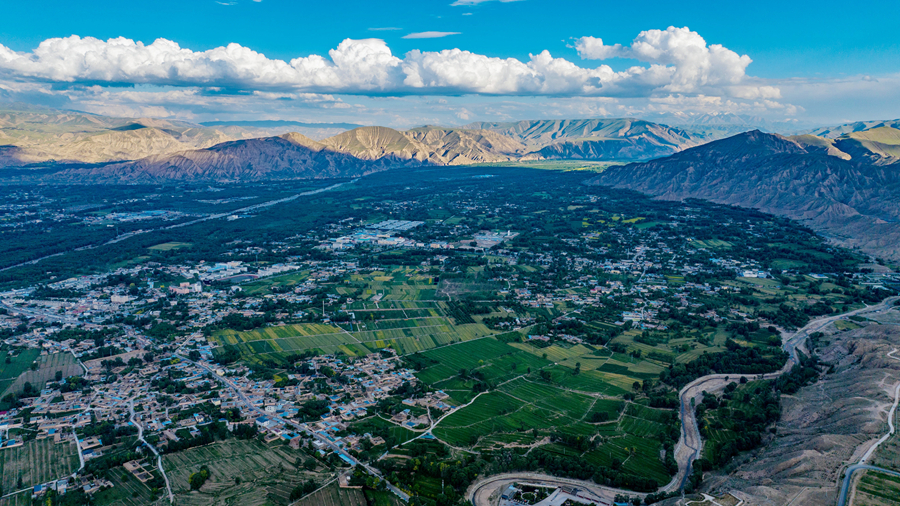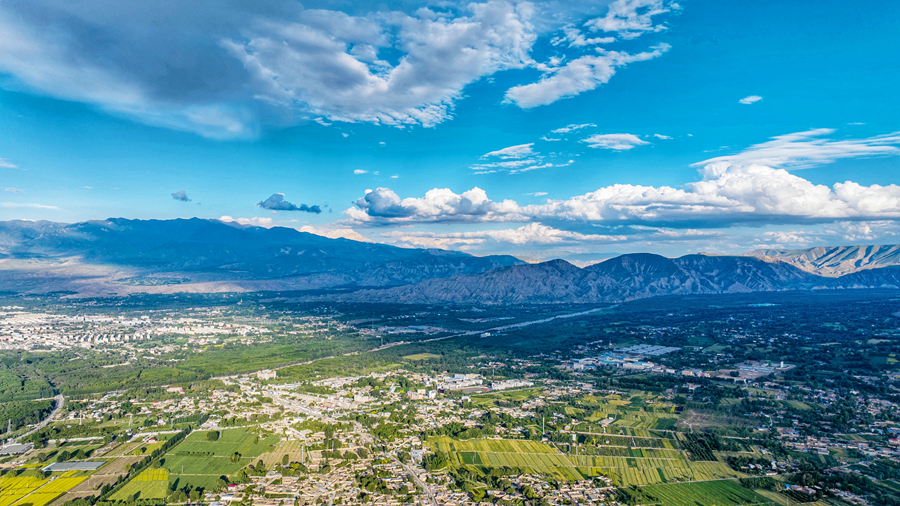 貴德縣城一角(無人機(jī)照片)。新華網(wǎng) 宋忠勇 攝