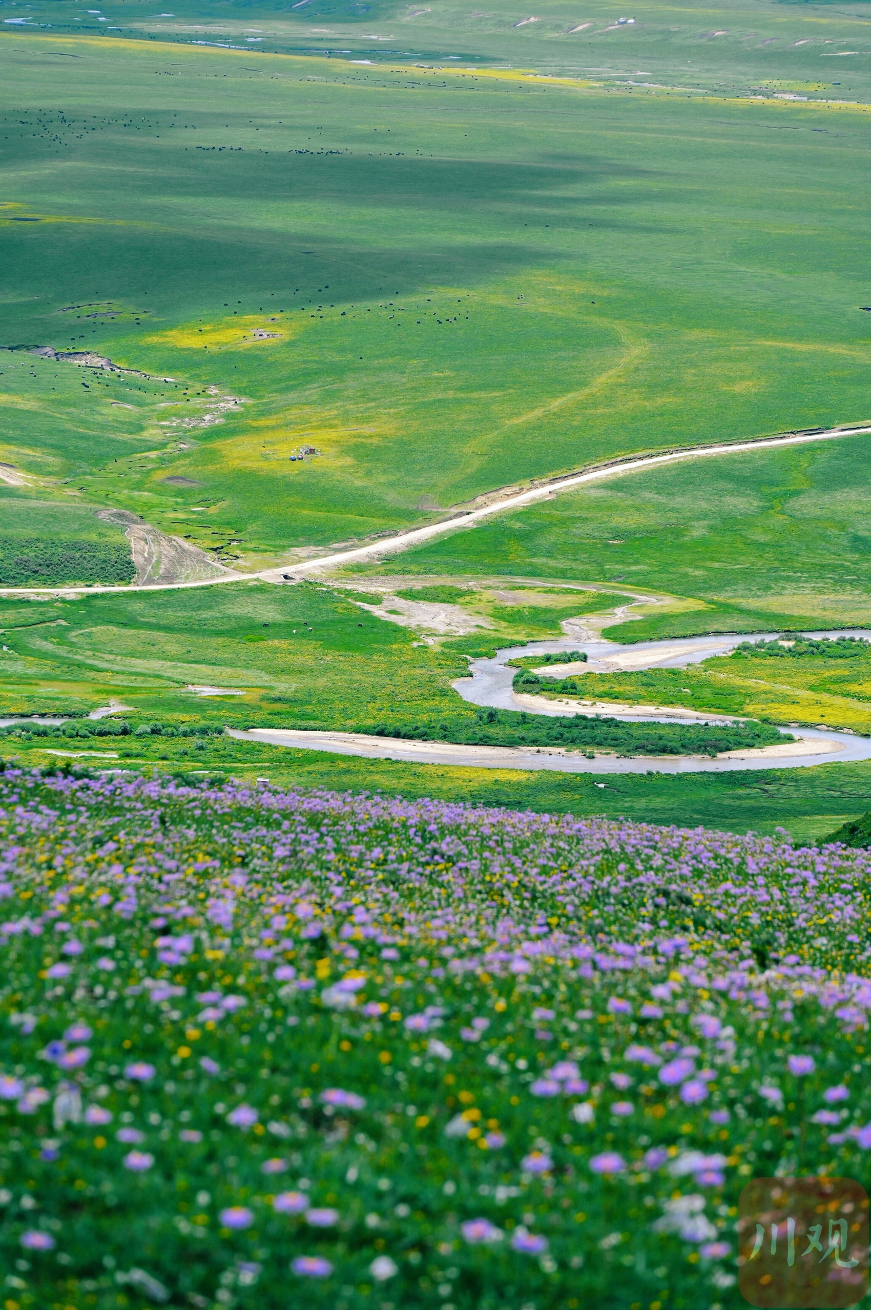 7月2日,四川省阿壩藏族羌族自治州紅原縣龍日鎮(zhèn),行走在路上眼前是不同的風(fēng)景與遇見。悠遠(yuǎn)的天空,潔白的云朵,起伏的山巒,濃綠的草地,閃著微光、涓涓流淌的溪水,連綿的大山…… 藍(lán)天下,滿眼旺盛的綠,這里就是川西高原的“阿勒泰”。