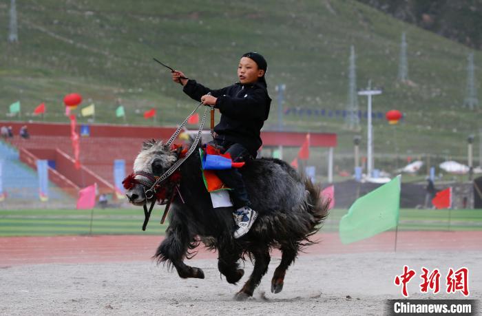 圖為一名小朋友參加牦牛競(jìng)賽。中新社記者 馬銘言 攝
