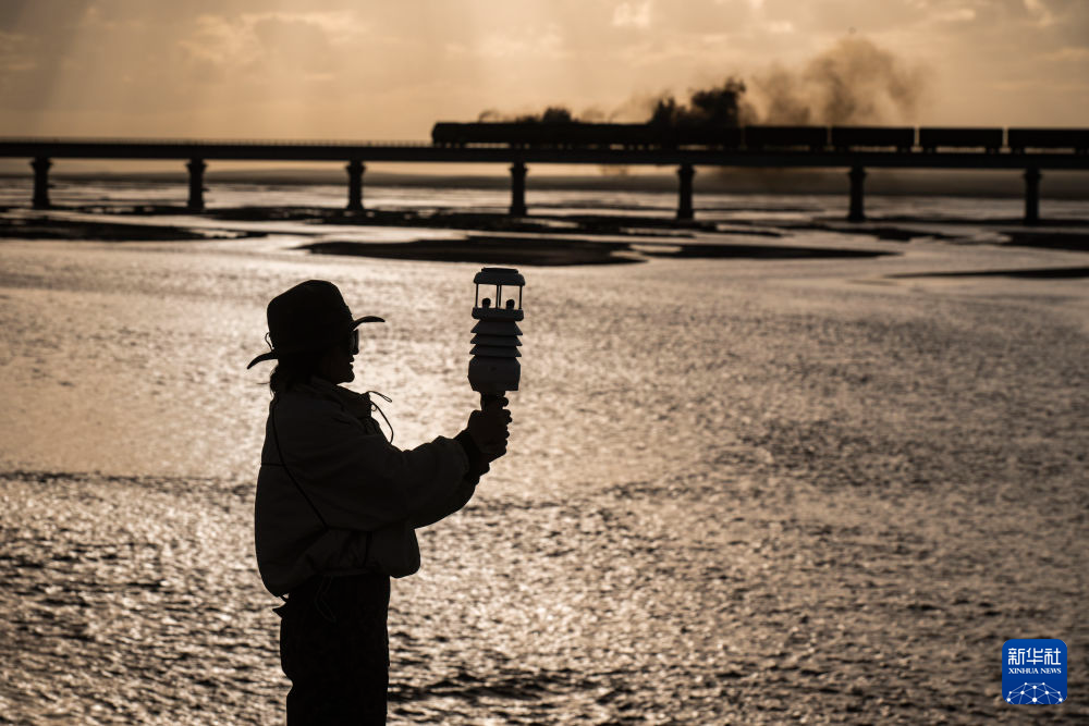 7月24日,科考隊員在沱沱河測量現(xiàn)場氣象條件。新華社記者 伍志尊 攝
