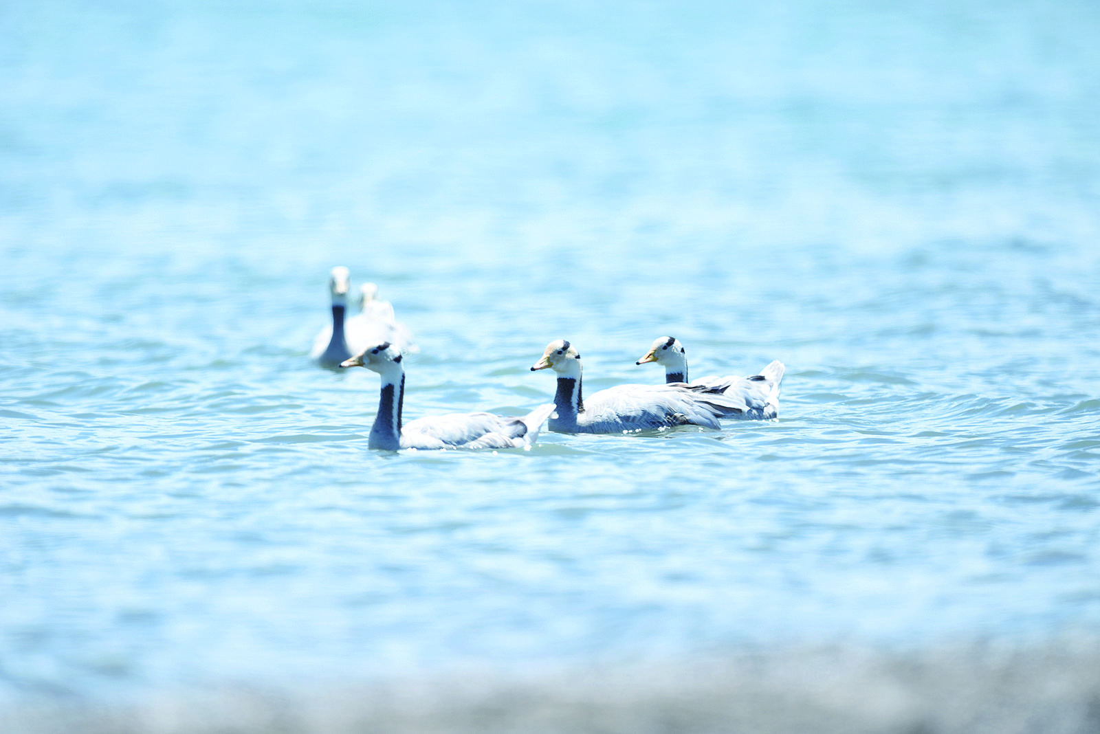 青海湖內(nèi)搖曳的斑頭雁。