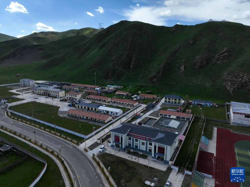 這是7月31日拍攝的青海省果洛藏族自治州達(dá)日縣窩賽鄉(xiāng)衛(wèi)生院,當(dāng)?shù)仄骄0纬^4000米(無人機(jī)照片)。新華社記者 張龍 攝