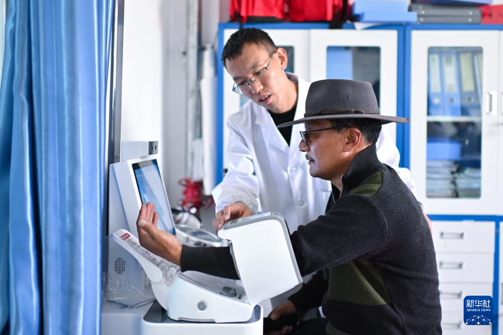 7月31日,青海省果洛藏族自治州達(dá)日縣窩賽鄉(xiāng)衛(wèi)生院醫(yī)生李陽在為群眾體檢。新華社記者 張龍 攝