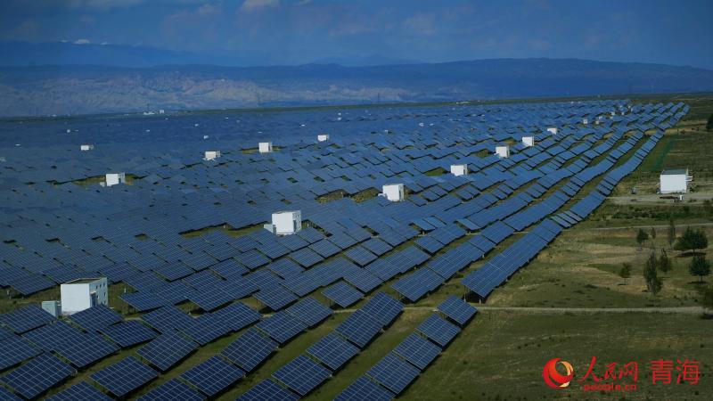 太陽能光伏發(fā)電板匯聚成一片“藍(lán)色海洋”。人民網(wǎng)記者 甘海瓊 攝