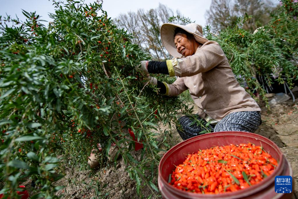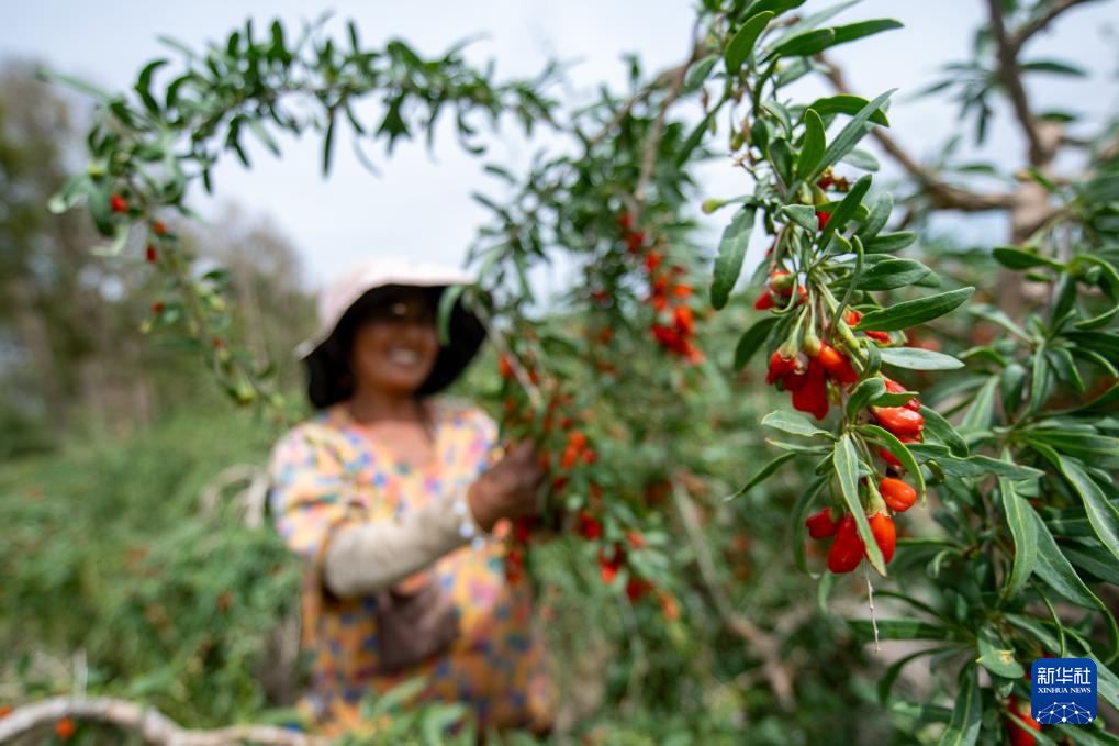 八月上旬,青海省海西蒙古族藏族自治州德令哈市的頭茬枸杞進入采摘期,采摘工人們搶抓晴好天氣積極采摘、晾曬。