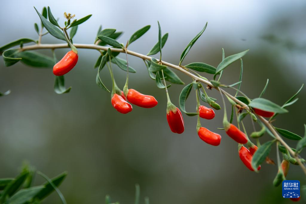 成熟的枸杞掛在枝頭(8月7日攝)。新華社 潘彬彬 攝