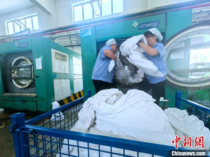 在每日不間斷的迎來送往中,中國鐵路青藏集團(tuán)有限公司的洗滌廠也異常繁忙。