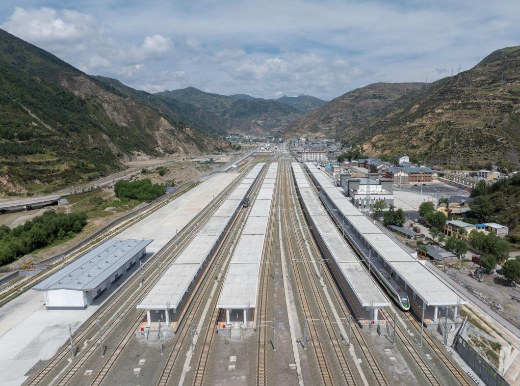 一輛調試列車??吭诖ㄇ噼F路松潘站(8月29日攝)。新華社記者 江宏景 攝