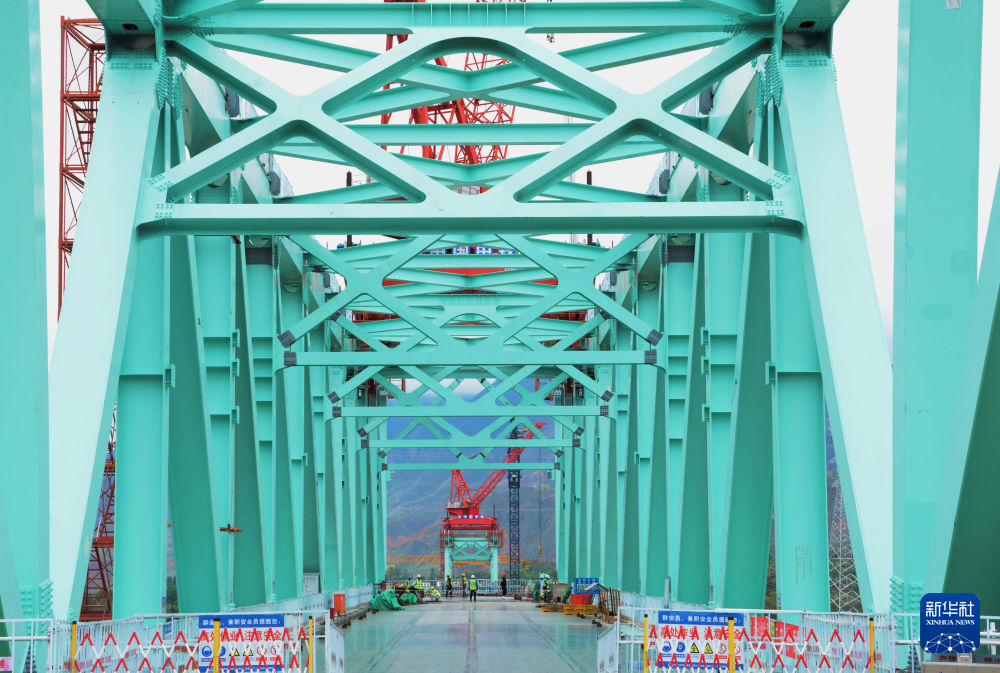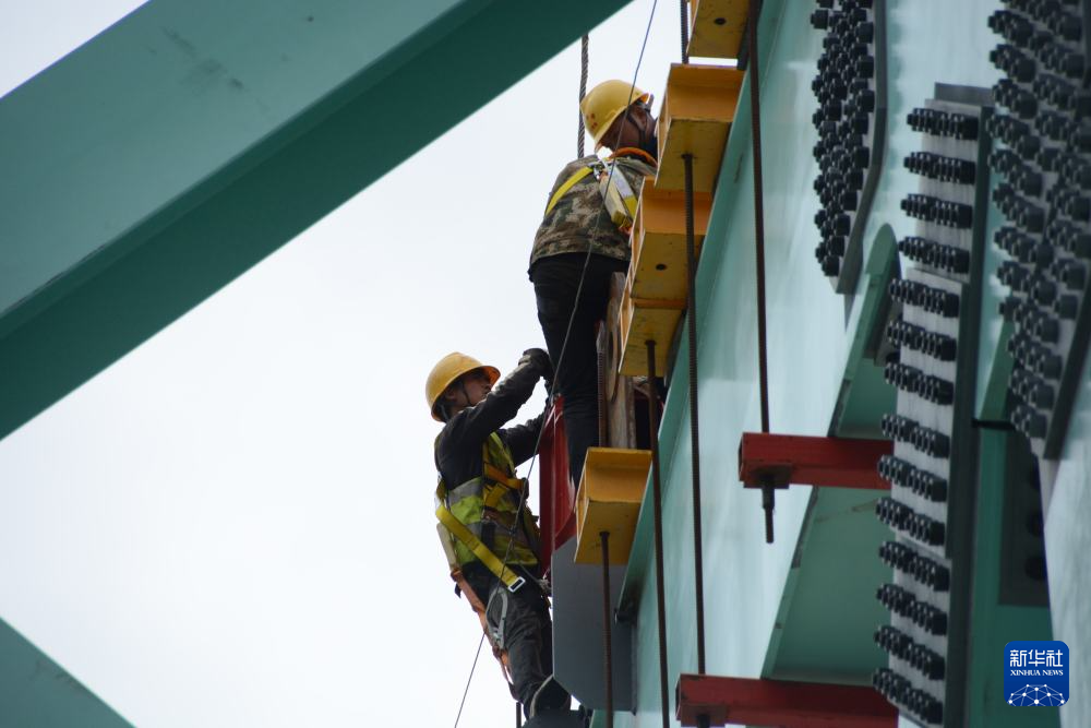 9月5日,工人在川青鐵路重點(diǎn)工程尖扎黃河特大橋施工現(xiàn)場(chǎng)安裝橋體鋼構(gòu)。新華社記者 王浡 攝