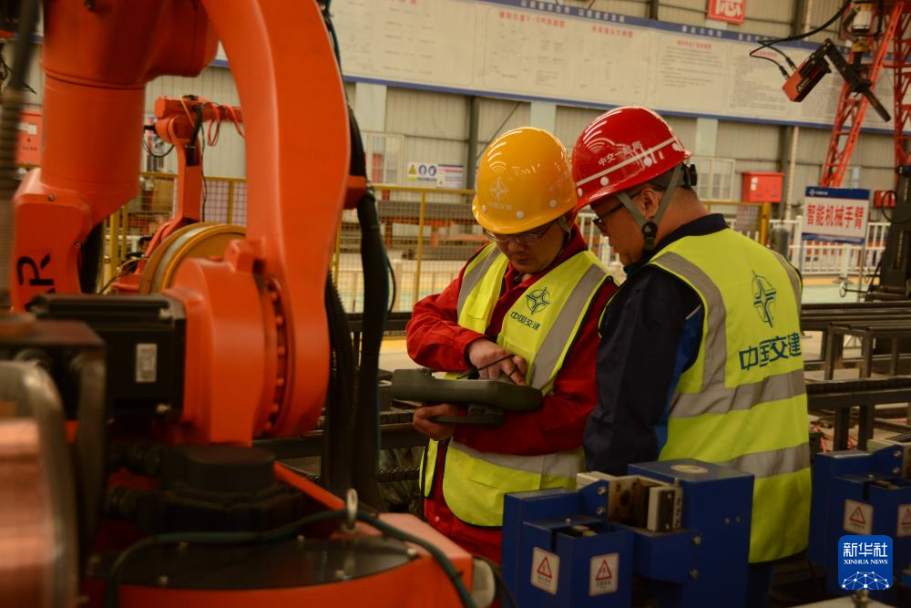 9月5日,在川青鐵路數(shù)字化構(gòu)件預(yù)制廠,工人調(diào)試自動(dòng)化機(jī)械臂。新華社記者 王浡 攝