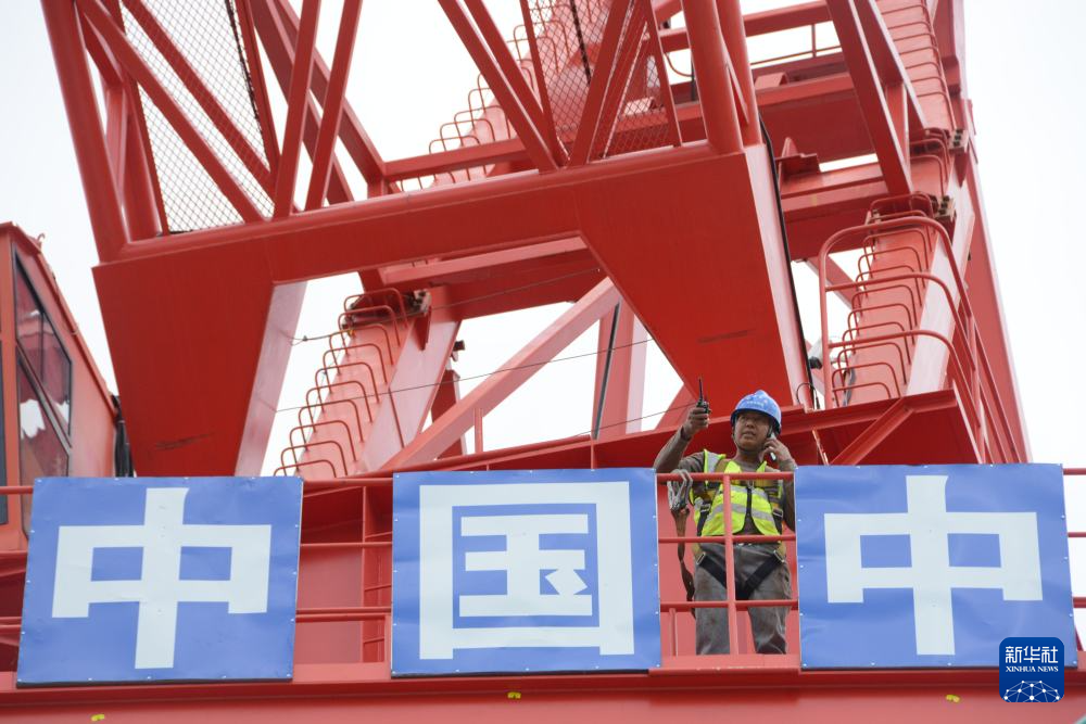 9月5日,工人川青鐵路重點(diǎn)工程尖扎黃河特大橋施工現(xiàn)場(chǎng)指揮吊機(jī)作業(yè)。新華社記者 王浡 攝