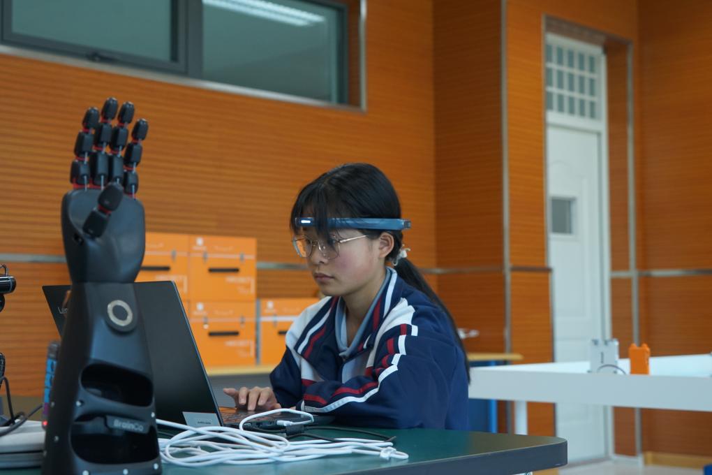 果洛西寧民族中學(xué)學(xué)生在人工智能實(shí)驗(yàn)室開展社團(tuán)活動(dòng)。新華社記者 張子琪 攝