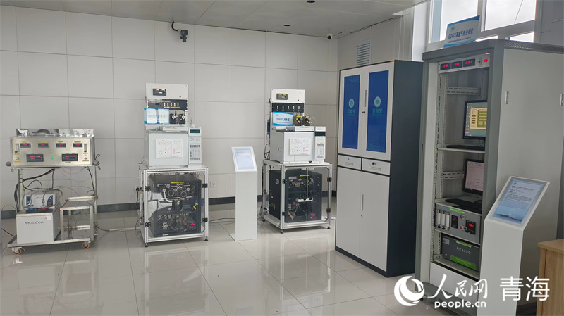 瓦里關(guān)全球大氣本底站觀測場內(nèi)的設(shè)備。人民網(wǎng)記者 張莉萍 攝