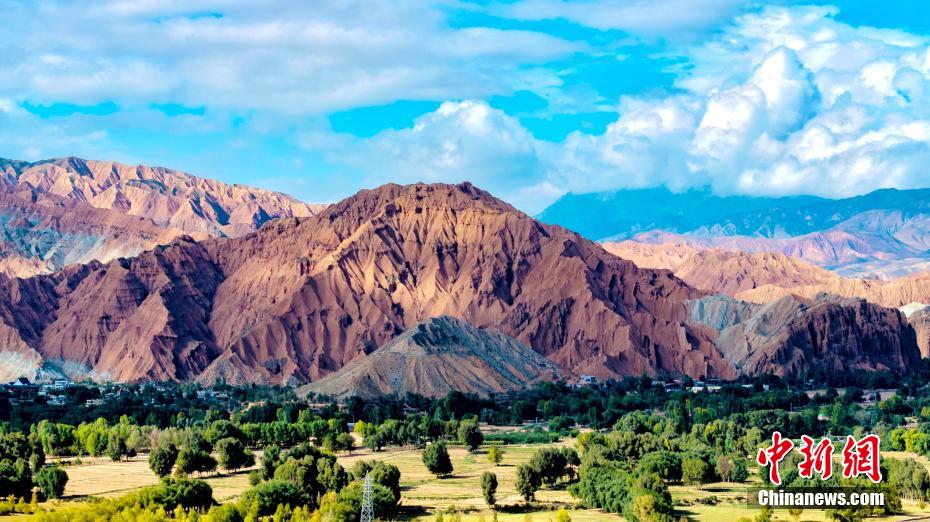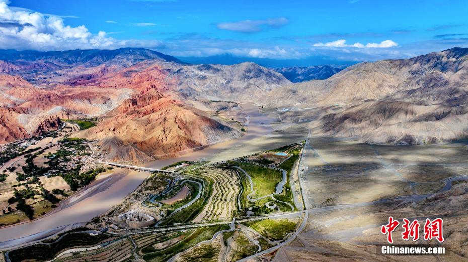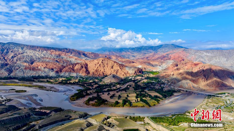 秋日高原,攝影愛好者在黃河上游的青海省海南藏族自治州貴德縣境內(nèi),航拍貴德國家地質(zhì)公園的阿什貢七彩峰叢地貌多姿多彩,秀麗壯美。畫面中,天高云淡,山巒起伏,黃河在山川中蜿蜒,阿什貢七彩峰叢色彩斑斕,與天空云彩的倒影形成了一幅壯美的山川社稷圖景。