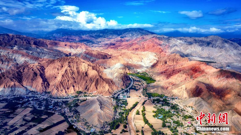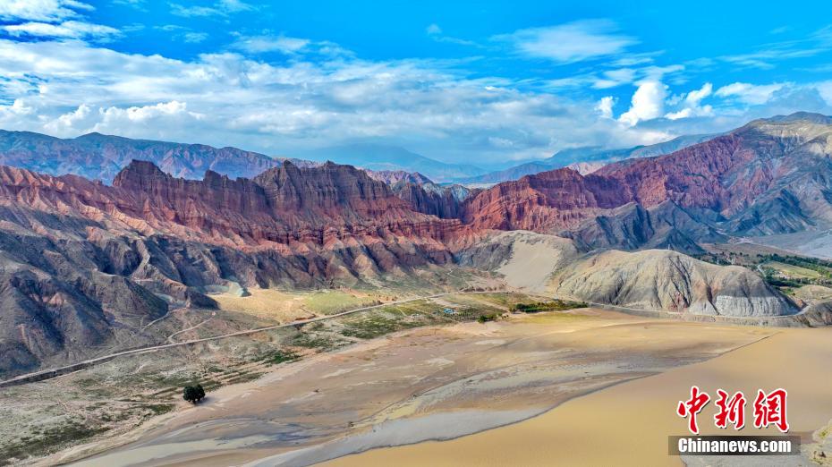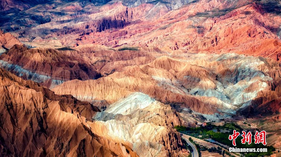 航拍圖為阿什貢七彩峰叢的丹霞地貌。(無人機照片)宋忠勇 攝