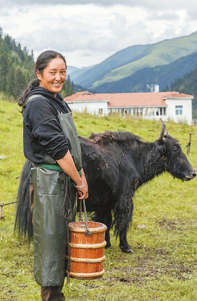 8月17日,阿壩州金川縣毛日鄉(xiāng)毛日村,村民蒲爾巴拉姆在牧場采集牦牛奶。采集的鮮奶會及時送至牛奶加工廠,為家里增加一筆可觀的收入。何海洋 攝