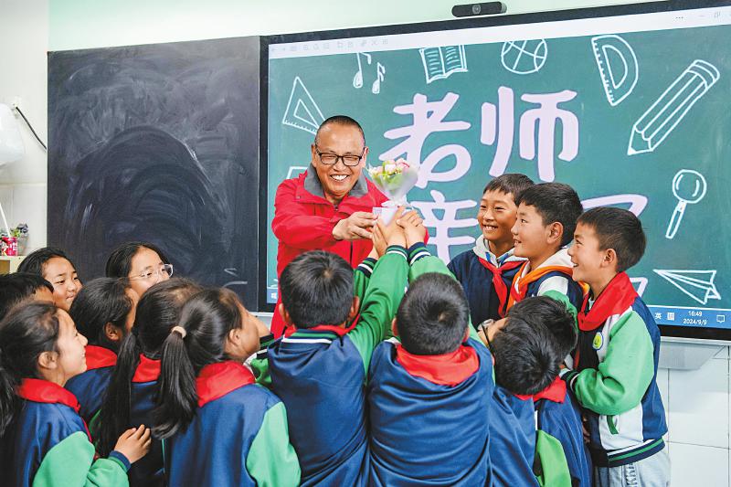 9月10日,2023年到阿壩州紅原縣城關(guān)小學(xué)支教的綿陽市鹽亭縣高渠小學(xué)張恩君老師收到了孩子們的教師節(jié)祝福。他克服各種困難,為高原孩子帶去知識。何海洋 攝