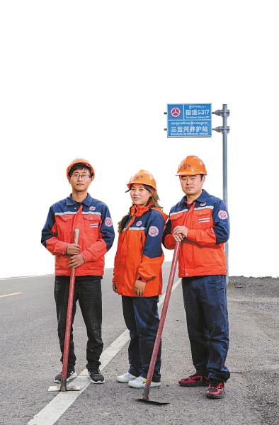 8月19日,甘孜州爐霍縣爐霍公路分局三岔河養(yǎng)護(hù)管理站,“90后”養(yǎng)護(hù)員袁明建(左)、尼馬翁姆(中)、蘭勛常年駐守,保障國道317線的暢通。何海洋 攝