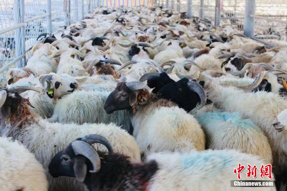 圖為羊群正在出欄。希日尖措 攝