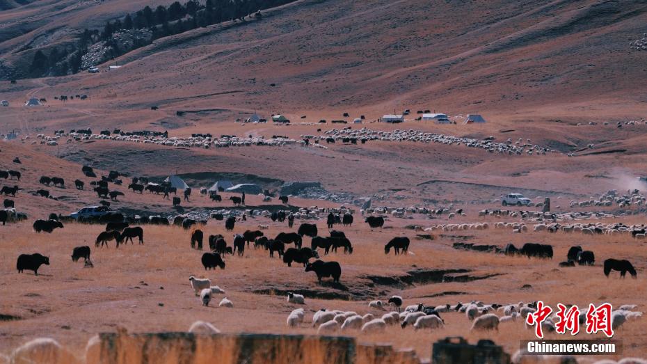 圖為牛羊在山坡上覓食。希日尖措 攝