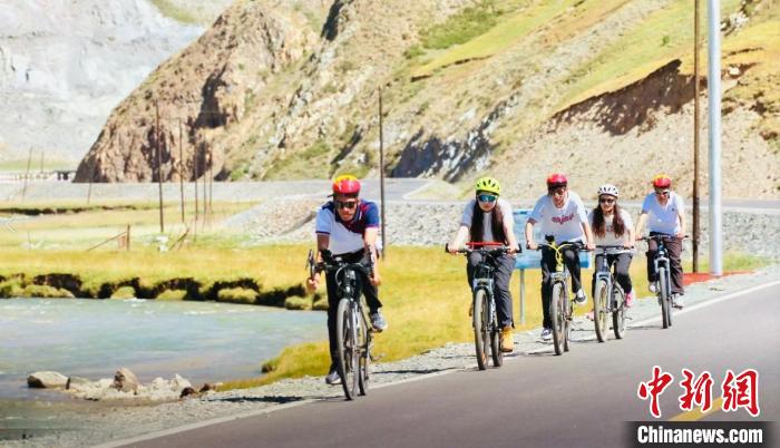 圖為民眾在公路上騎行。青海省交通運(yùn)輸廳 供圖
