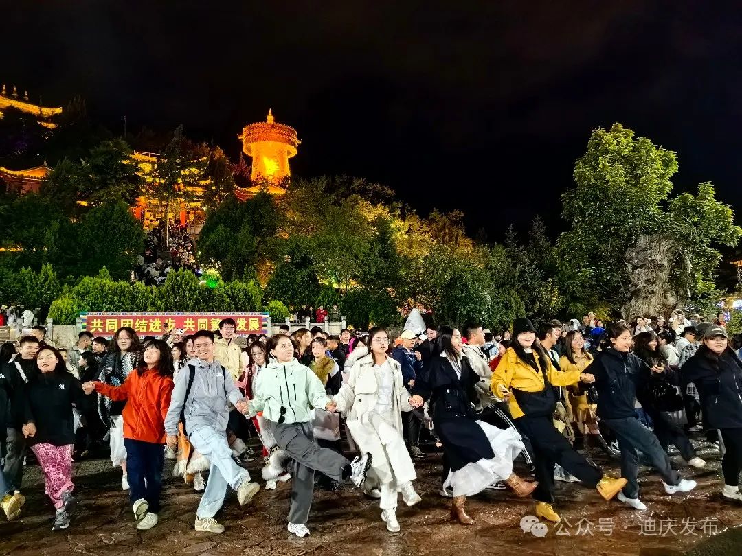 10月1日晚,香格里拉市在獨(dú)克宗古城舉辦“唱紅歌頌祖國(guó)·唱民族團(tuán)結(jié)舞”篝火晚會(huì),來(lái)自各地的游客與迪慶各族群眾一起載歌載舞歡度節(jié)日。