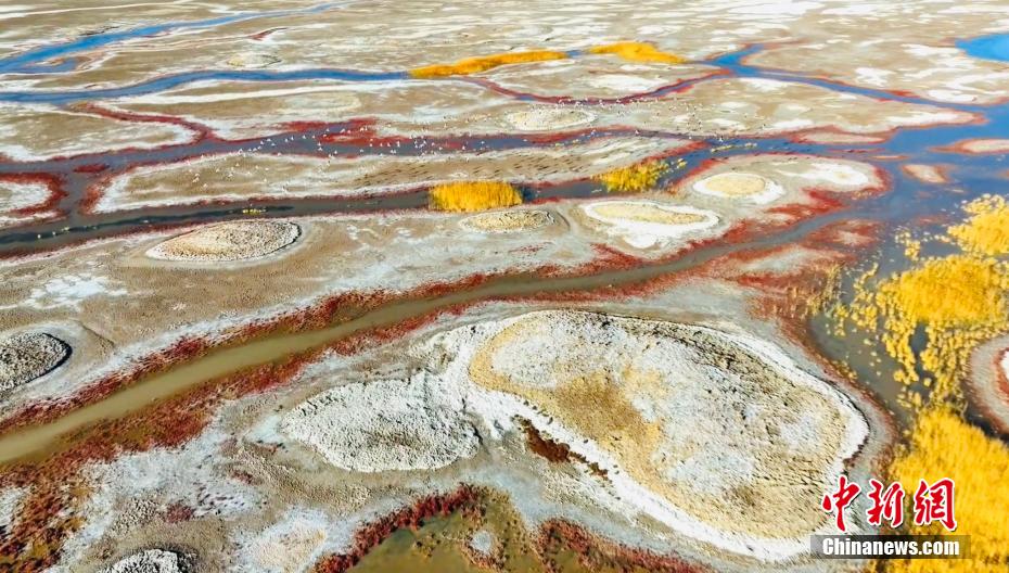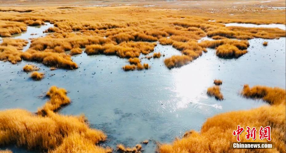 圖為無(wú)人機(jī)航拍尕斯庫(kù)勒湖濕地秋景。王小炯 攝