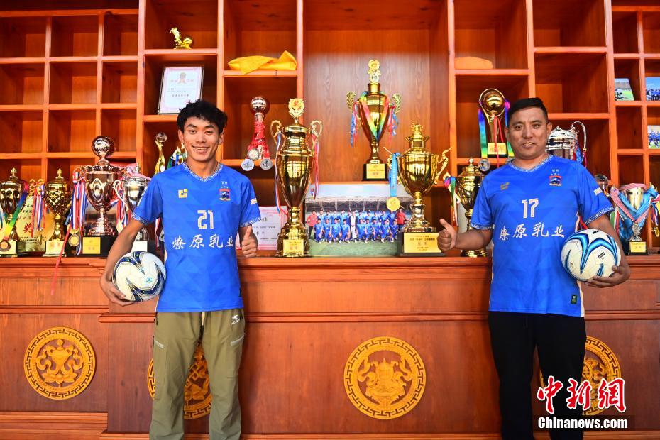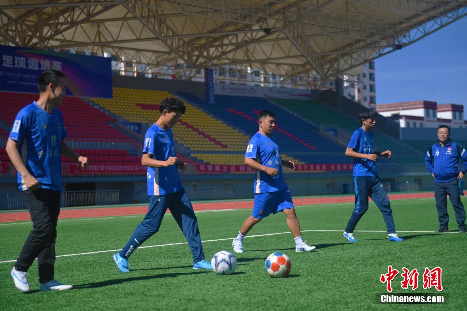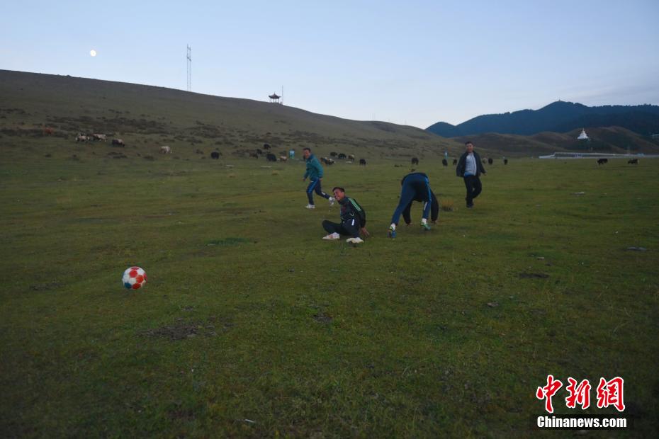 10月15日,在甘肅省甘南藏族自治州合作市一牧場內(nèi),甘南九二聯(lián)隊(duì)足球隊(duì)員進(jìn)行訓(xùn)練。該足球隊(duì)已成立32年,由牧民、務(wù)工者、歌舞演員、個(gè)體戶、老師、學(xué)生等組成,如今已歷經(jīng)三代球員的成長。