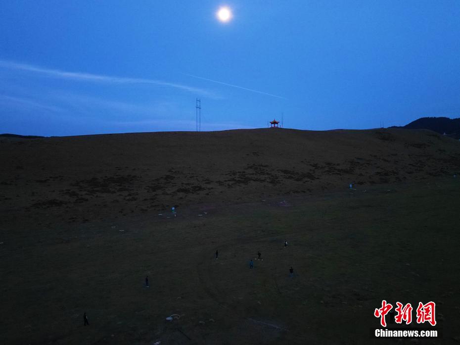 10月15日晚,在甘肅省甘南藏族自治州合作市一牧場內(nèi),甘南九二聯(lián)隊(duì)足球隊(duì)員在月下訓(xùn)練。該隊(duì)隊(duì)員因?yàn)槎荚诓煌胤焦ぷ?,所以長期自我尋找草場、牧區(qū)等近場地訓(xùn)練,高原草場是他們訓(xùn)練的一大優(yōu)勢。