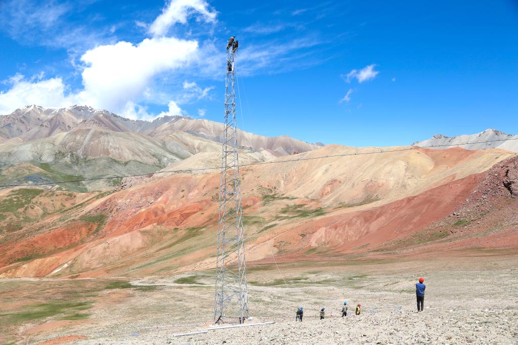 8月30日,國網(wǎng)青海省電力公司輸電專業(yè)施工人員正在蘇里35千伏輸變電工程開展工作。許小萍 攝