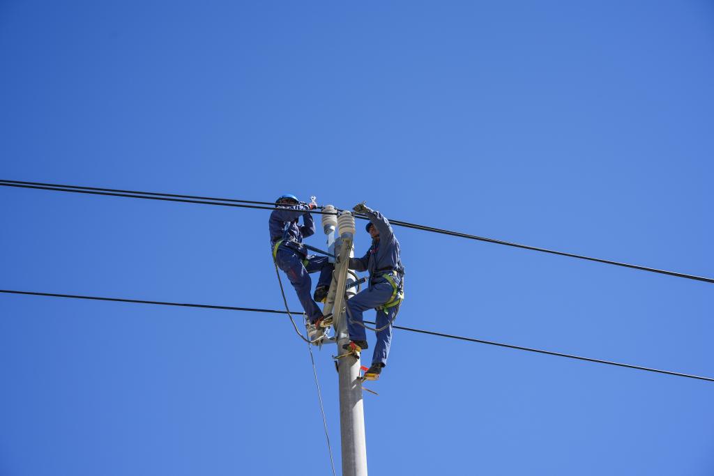 9月6日,國網(wǎng)青海省電力公司輸電專業(yè)施工人員架設安裝蘇里鄉(xiāng)10千伏線路。徐琛 攝