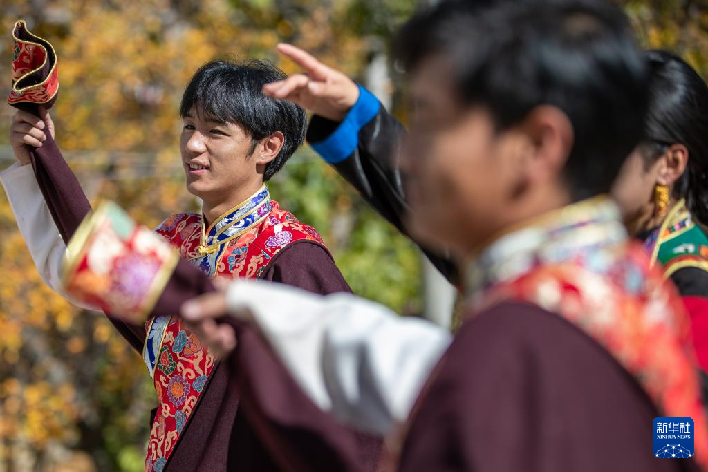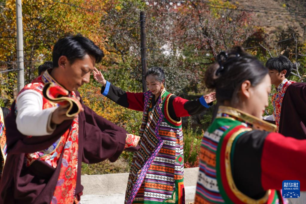 11月2日,舞蹈演員在仲德村表演鄉(xiāng)城鍋莊舞。新華社記者 胥冰潔 攝