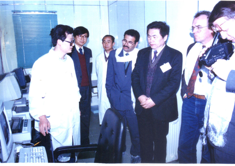 1994年9月,中外專家在瓦里關全球大氣本底站實驗室參觀。青海省氣象局供圖