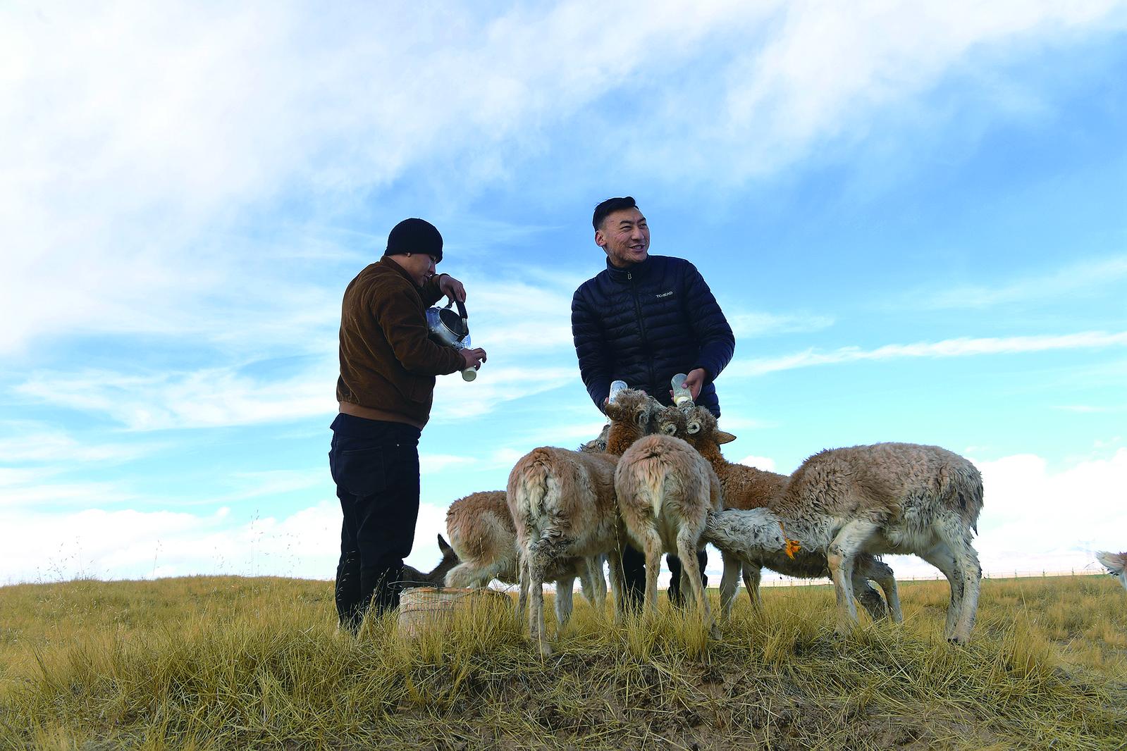 11月19日中午剛過(guò),三江源國(guó)家公園索南達(dá)杰保護(hù)站內(nèi),才仁洛松和江措開(kāi)始為小藏羚羊準(zhǔn)備牛奶。牛奶燒開(kāi),涼到適合溫度,奶瓶用沸水浸泡沖洗,再將涼好的牛奶依次灌入奶瓶中,緊接著,才仁洛松和江措來(lái)到養(yǎng)護(hù)小藏羚羊的圍欄內(nèi),小藏羚羊遠(yuǎn)遠(yuǎn)看見(jiàn)兩人,咩、咩、咩地向兩人跑去,圍著兩人用頭親昵地頂著,好像在撒嬌。