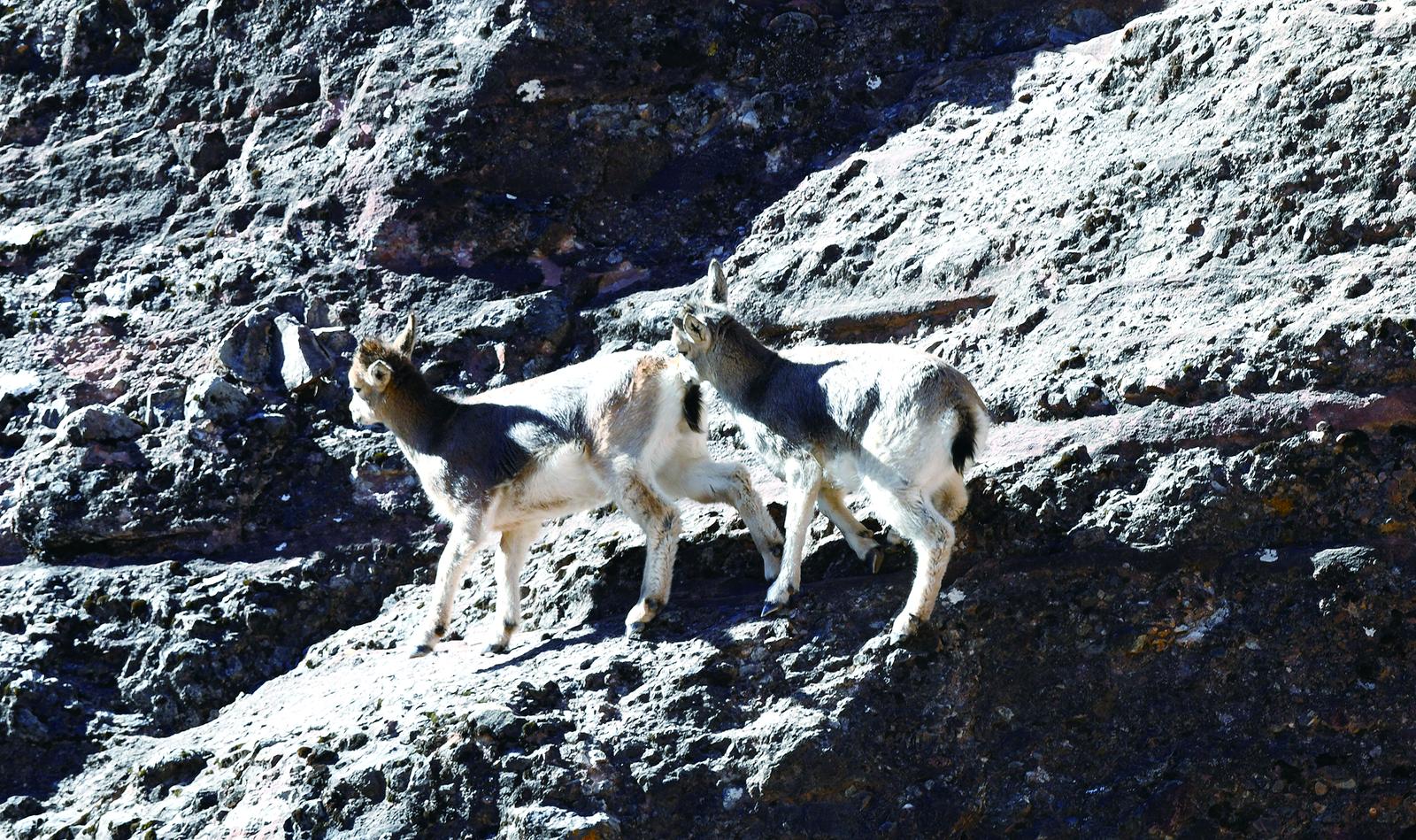 昂賽大峽谷峭壁上漫步的巖羊。