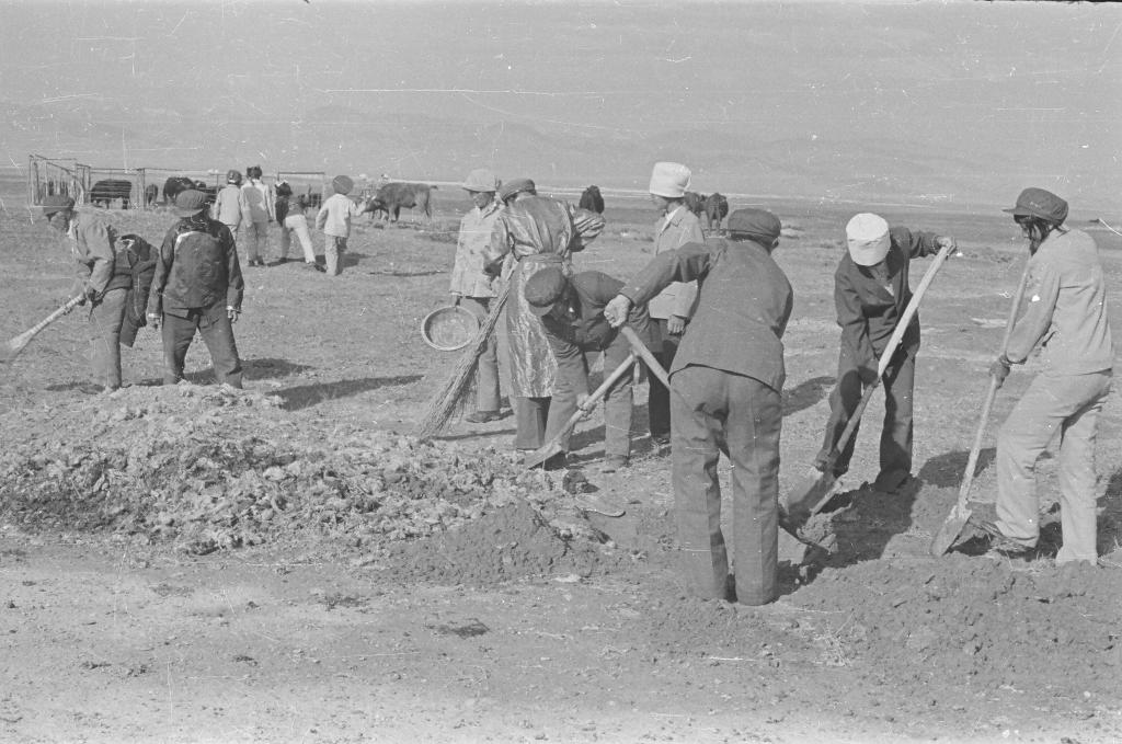20世紀(jì)50年代,群眾在香日德開墾農(nóng)田(資料照片)。新華社發(fā)