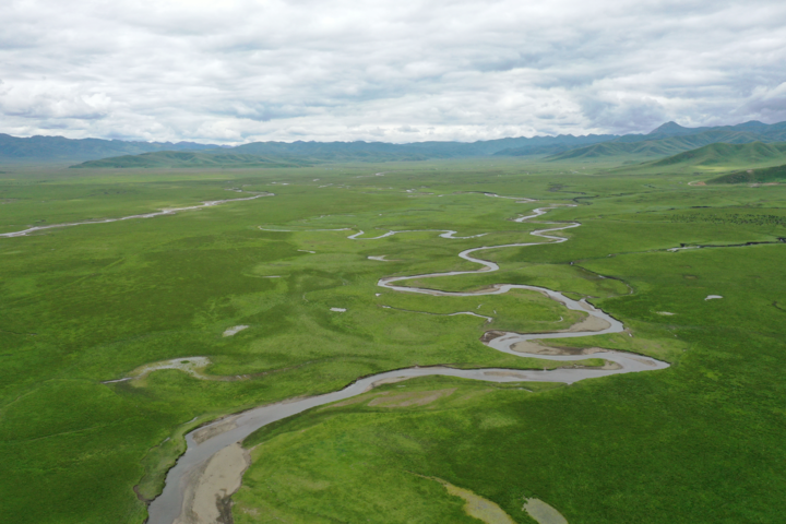 瑪曲縣阿萬倉(cāng)濕地(無人機(jī)照片)。新華社記者 文靜 攝