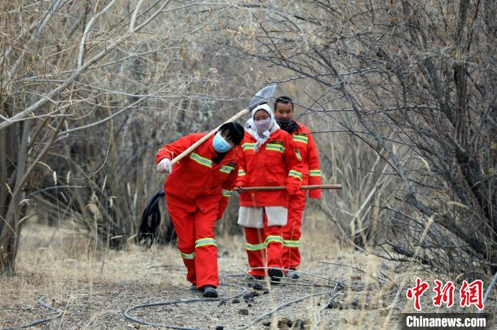 圖為12月9日,青海海西格爾木,賈金蘭(左一)在千畝林中心管護(hù)站巡護(hù)。中新社記者 王磊 攝