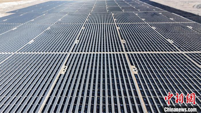 圖為12月8日,青海海西格爾木,魯能海西州多能互補(bǔ)集成優(yōu)化國家示范工程中整齊排列的光伏板。(無人機(jī)圖片)薛蒂 攝