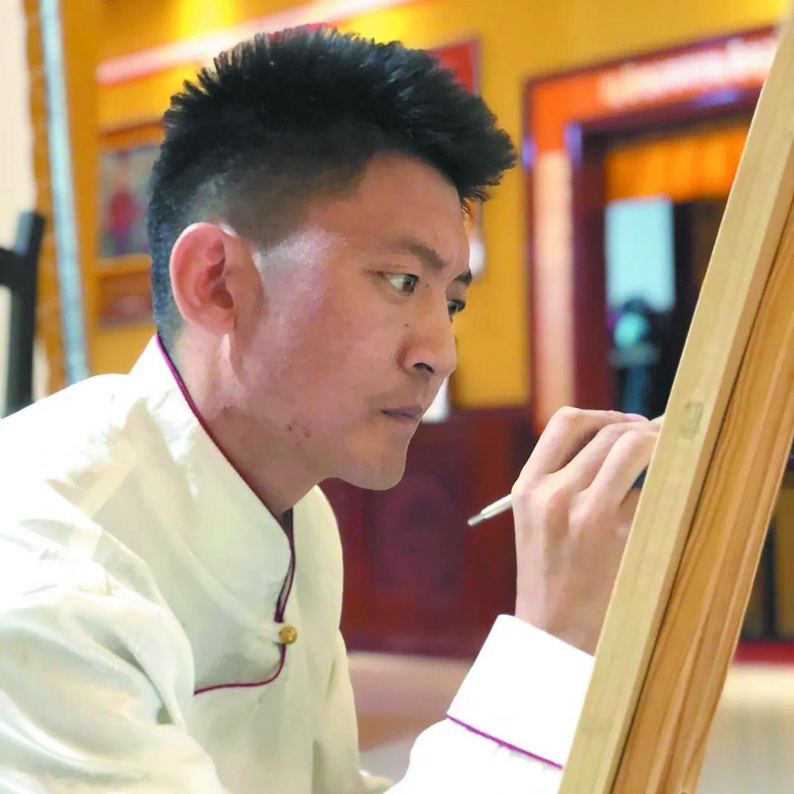 2011年,一次偶然的機(jī)會(huì),華科才旦得以較為系統(tǒng)地接觸唐卡。它那獨(dú)特的色彩、細(xì)膩的線條和深刻的內(nèi)涵,仿佛一道光照進(jìn)了他的內(nèi)心深處,令他癡迷。家人看出了華科才旦對(duì)于唐卡的執(zhí)著,經(jīng)過再三考慮,他們決定成全他的夢(mèng)想,義無反顧地支持華科才旦進(jìn)入唐卡藝術(shù)的世界,就這樣,華科才旦先后跟著同仁縣尕沙日村民間工藝美術(shù)師周才加、同仁縣吾屯下莊桑杰本等老師,開始全面學(xué)習(xí)傳統(tǒng)唐卡繪畫及知識(shí)理論。