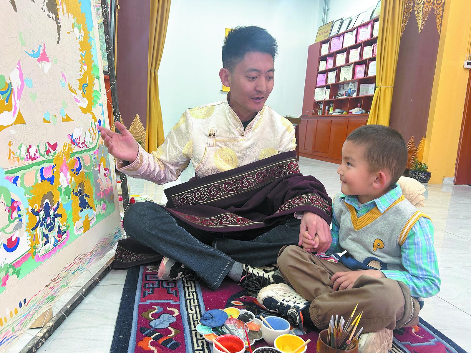 華科才旦為小朋友介紹唐卡藝術(shù)。