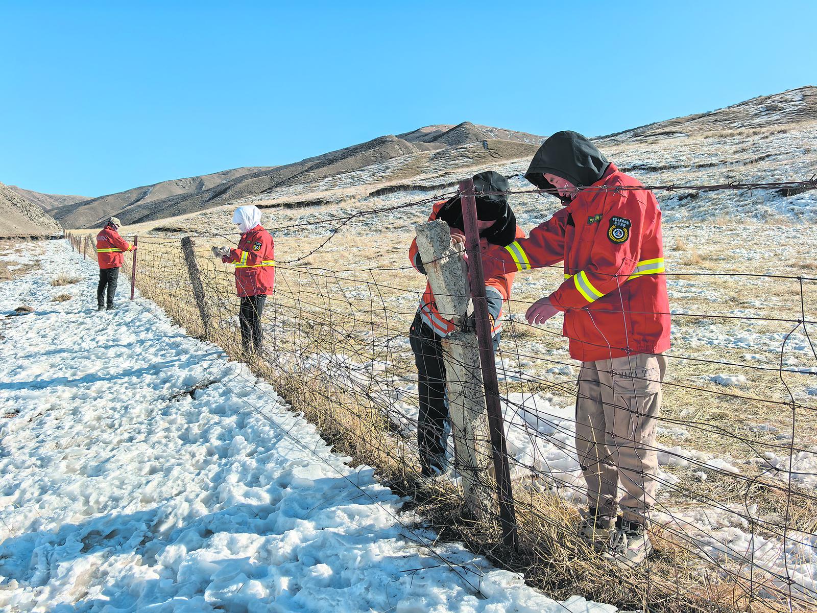 “評(píng)選的時(shí)候,村里優(yōu)先考慮困難群眾,被評(píng)為生態(tài)員以后,我們工資高了不說(shuō),還給我們配發(fā)了統(tǒng)一的巡護(hù)服裝,包括春夏衣和雨衣,裝備齊全大家干勁更足了!”上個(gè)月的大雪還未消融,金灘鄉(xiāng)東達(dá)村生態(tài)員朱發(fā)財(cái),這兩天忙著巡查禁牧草場(chǎng)的網(wǎng)圍欄,有缺損的及時(shí)修補(bǔ)。