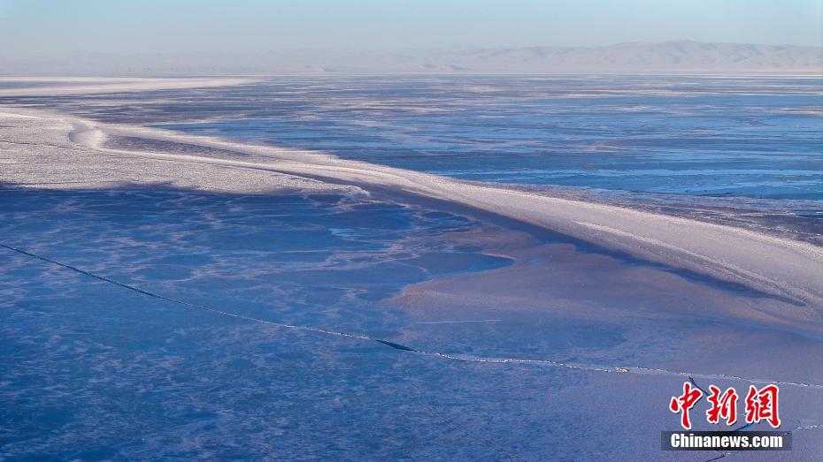 1月26日,被譽為“高原藍(lán)寶石”的青海湖湖面上覆蓋了一層晶瑩剔透的湖冰,在陽光的照射下銀光閃爍,宛如仙境。根據(jù)衛(wèi)星遙感監(jiān)測結(jié)果,1月19日,青海湖完全凍結(jié)。圖為進(jìn)入封凍期的青海湖。(航拍圖片)