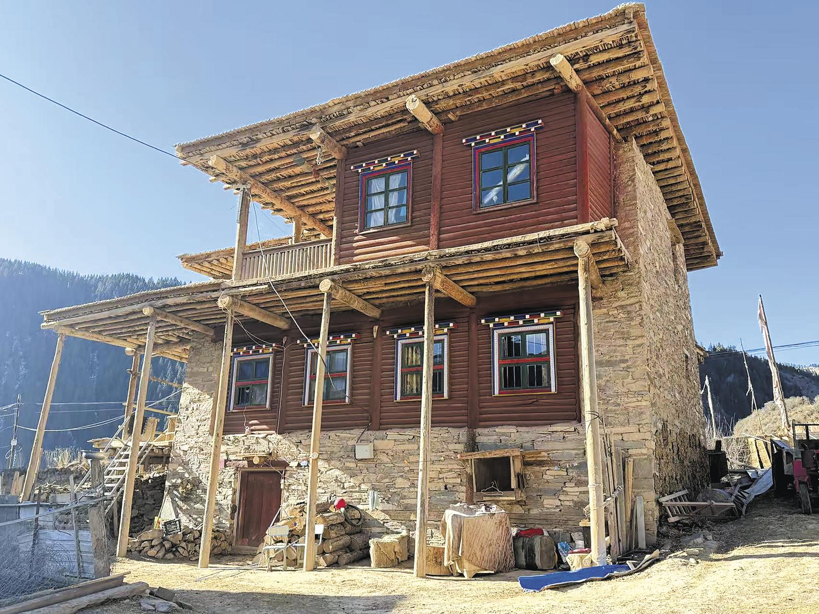 眼前是一座標(biāo)準(zhǔn)的藏式碉樓,整體三層,高度近10米,外部由大小不一石片砌成,墻體呈梯形,屋頂皆平?!拔覀冞@里的碉樓大多為二至三層,每一層都有不同的功能劃分?!碧m聞?wù)廴赫f。