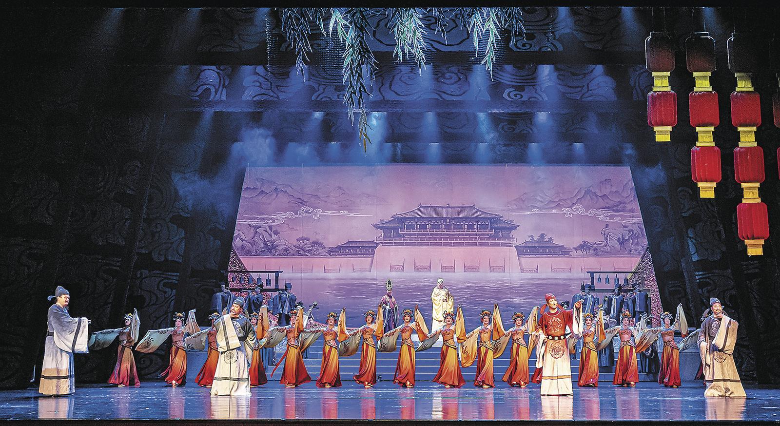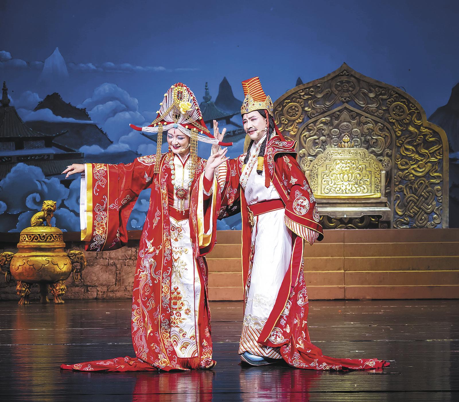 表演開始,藏戲獨(dú)特的唱腔響起,演員們身著華麗厚重、色彩斑斕的藏戲服飾登場?,F(xiàn)場鼓撥聲交織,演員們的唱詞和念白抑揚(yáng)頓挫,講述著金城公主為促進(jìn)漢藏文化交流、促進(jìn)民族團(tuán)結(jié)做出的卓越貢獻(xiàn)。