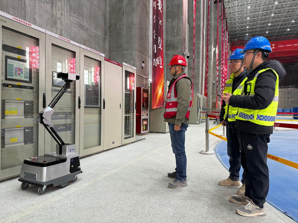 1月16日,羊曲水電站工作人員正利用機(jī)器人檢查設(shè)備運(yùn)行情況。新華社記者 解統(tǒng)強(qiáng) 攝